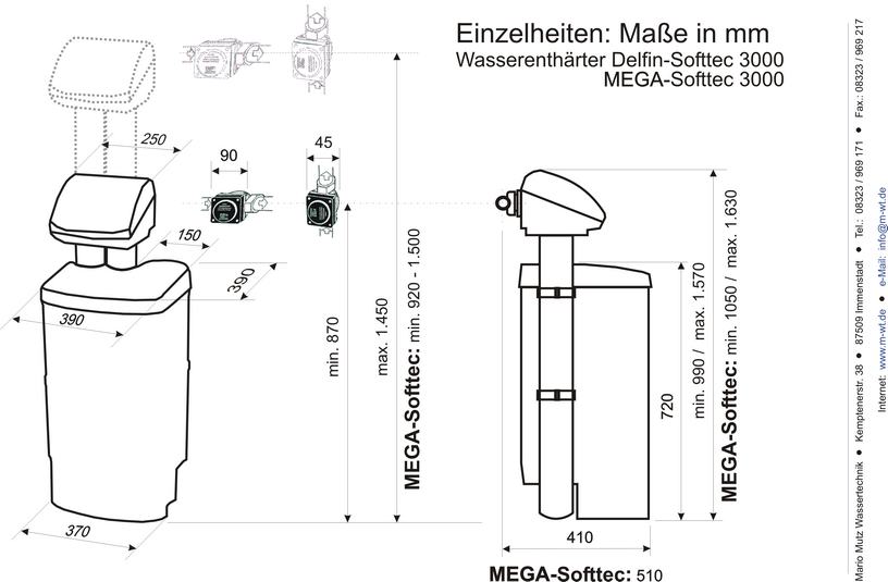 | Höhe bei Anschluß in 1500 mm Höhe | 1630 mm |